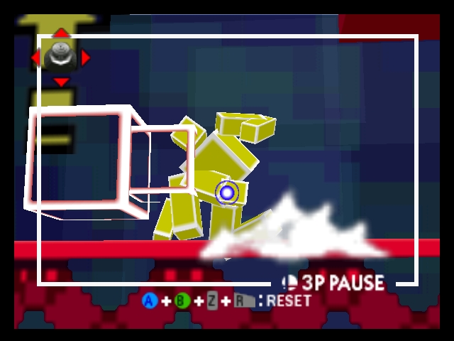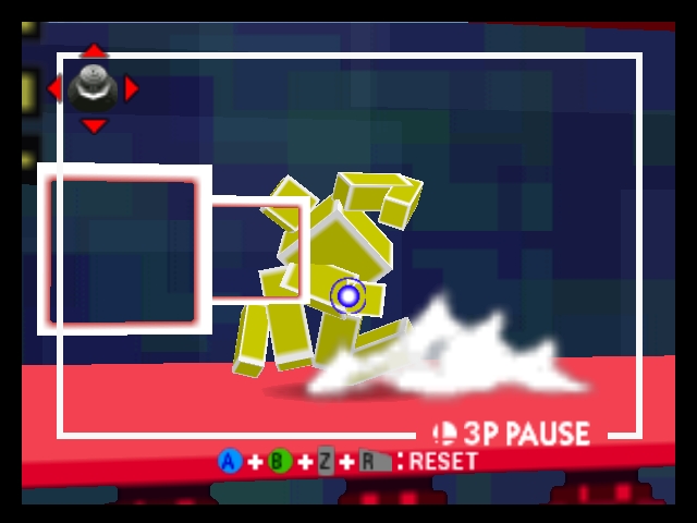 黄色い人型のがファルコン、赤と白の四角い箱が攻撃の判定です。